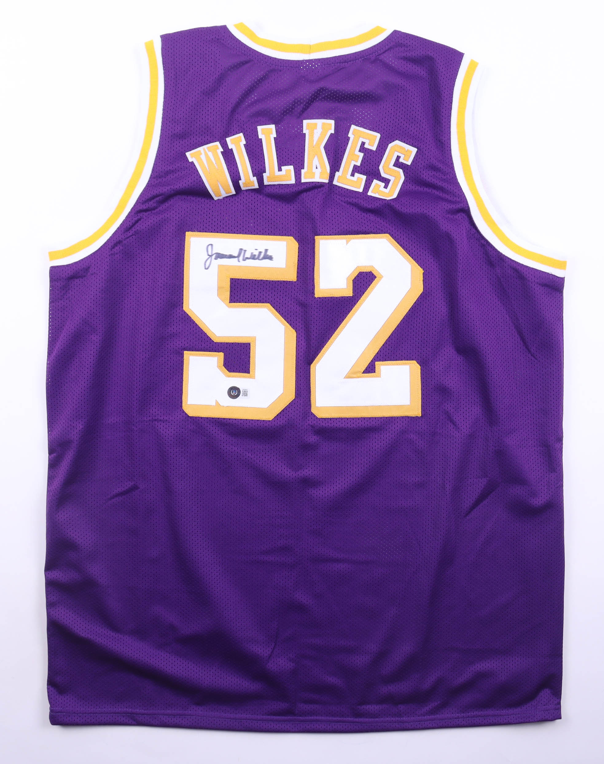 Custom jersey with everything sewn on, size XL. Hand-signed by Jamaal Wilkes (HOF).