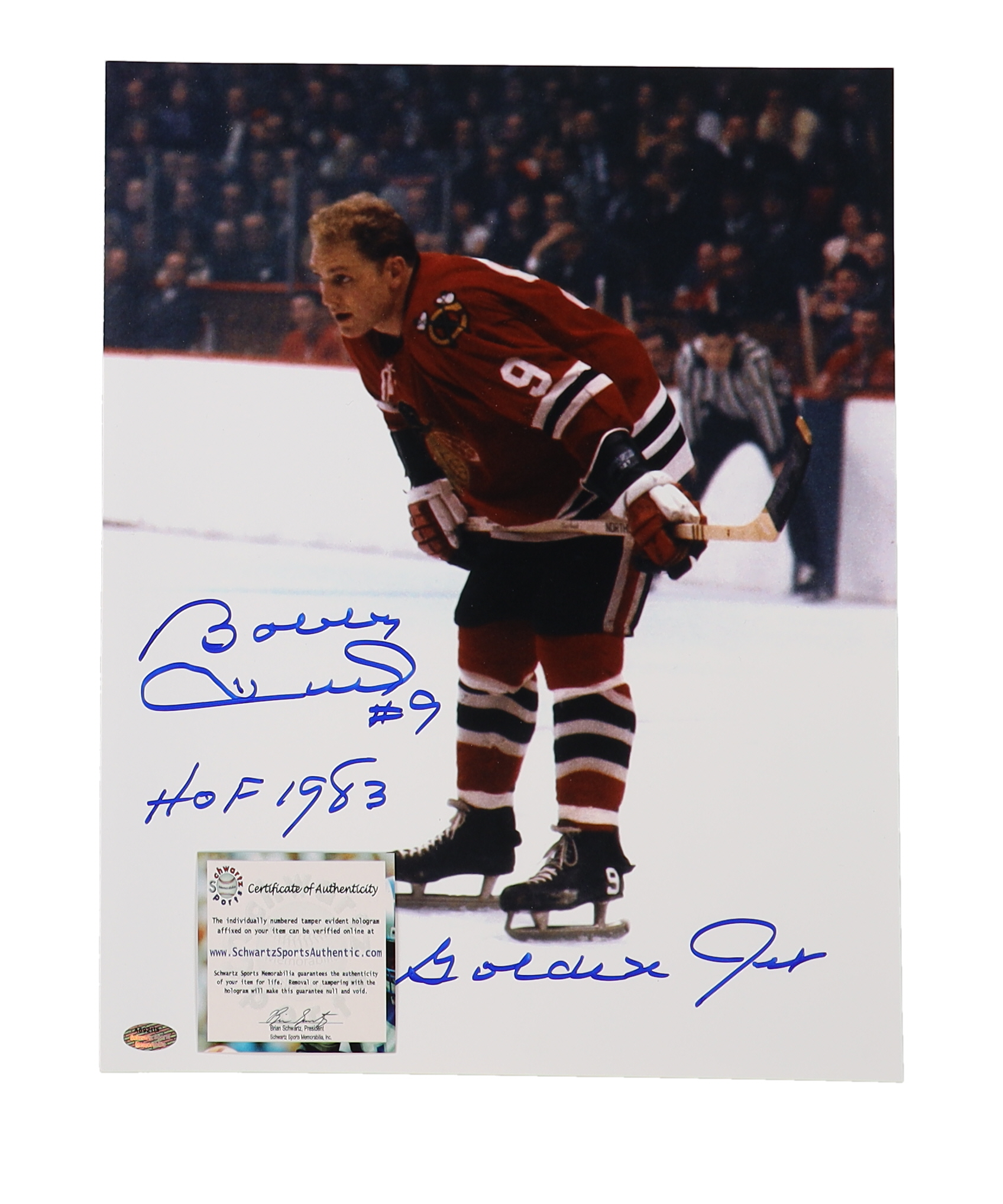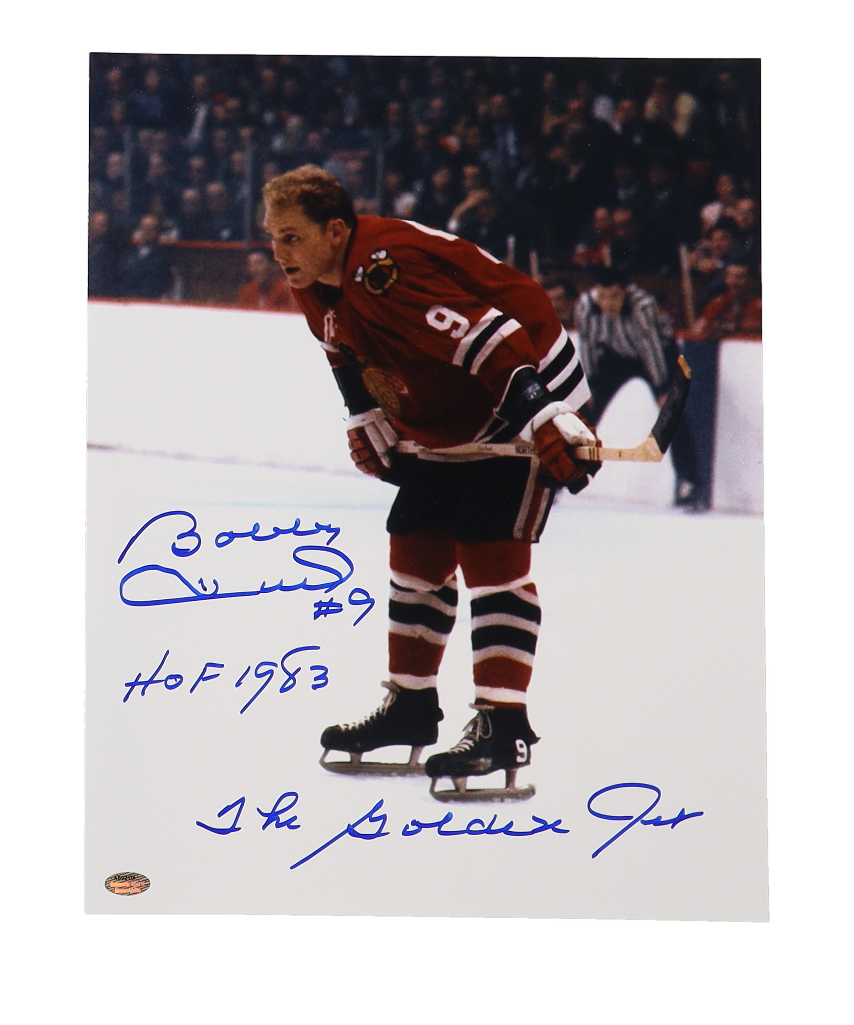 Bobby Hull Signed Blackhawks 11x14 Photo Inscribed "HOF 1983" & "The Golden Jet" (Schwartz)
