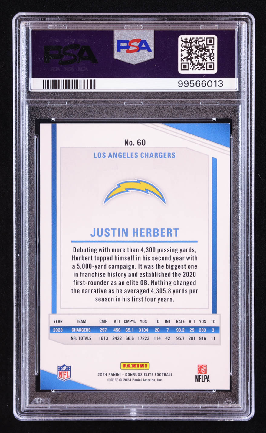 Justin Herbert 2024 Elite FOTL Pink #60 #11/13 (PSA 9)