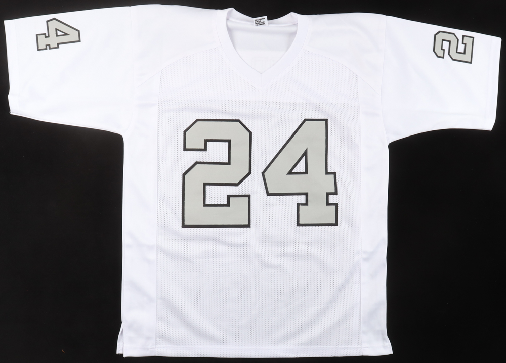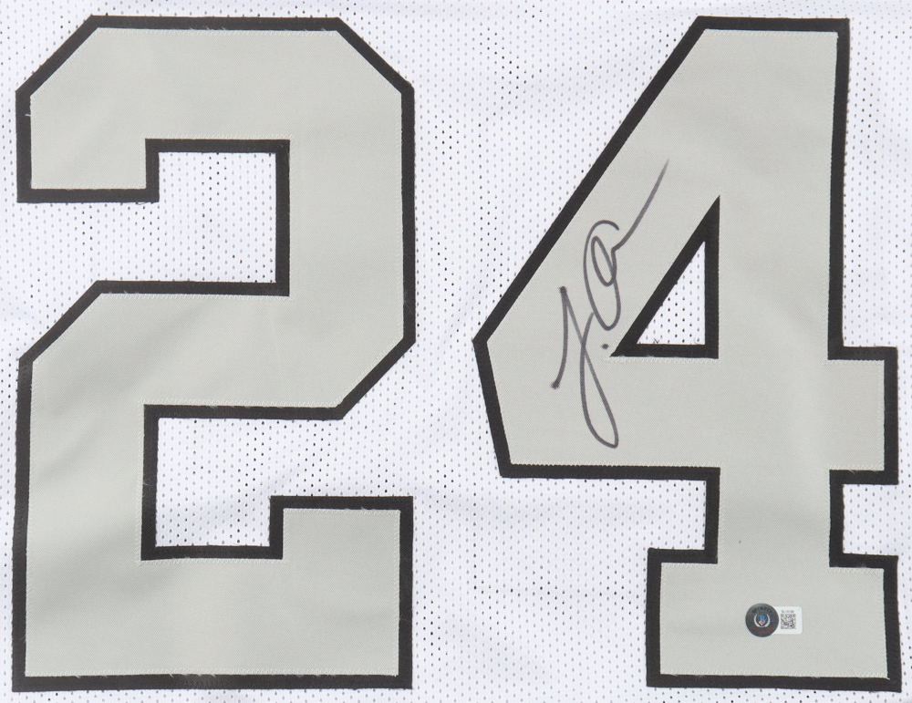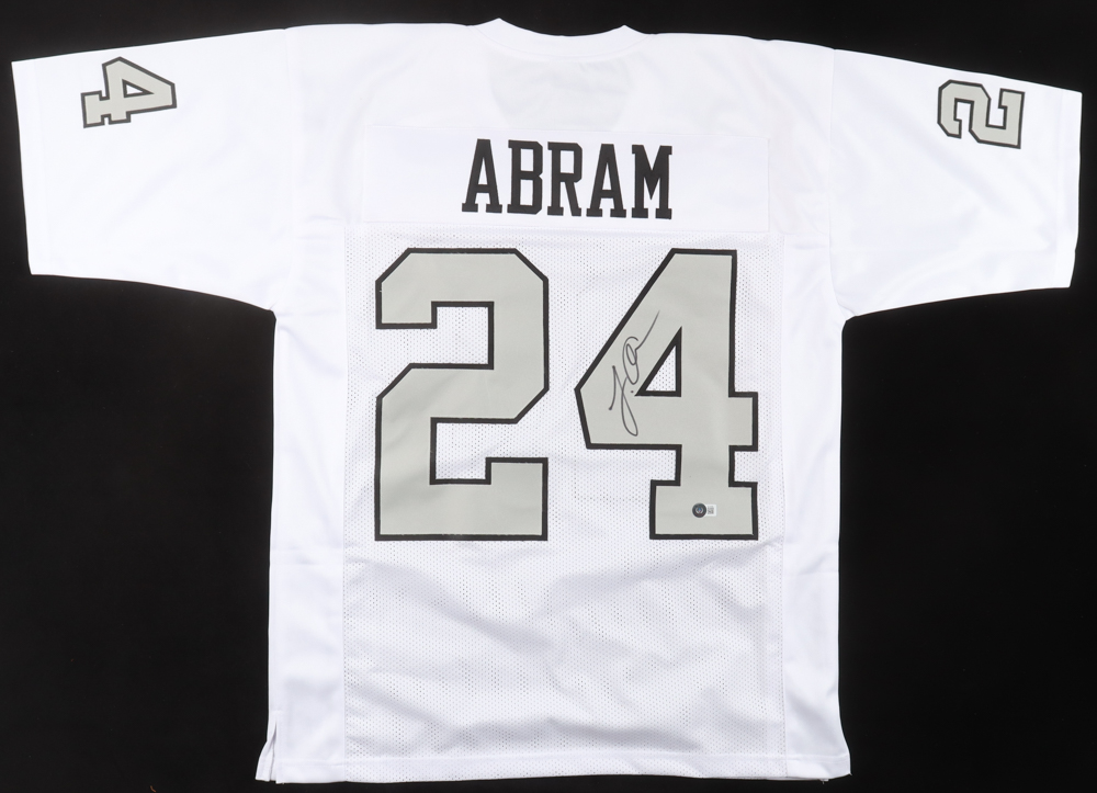 Custom jersey with everything sewn on, size XL. Hand-signed by John Abraham.