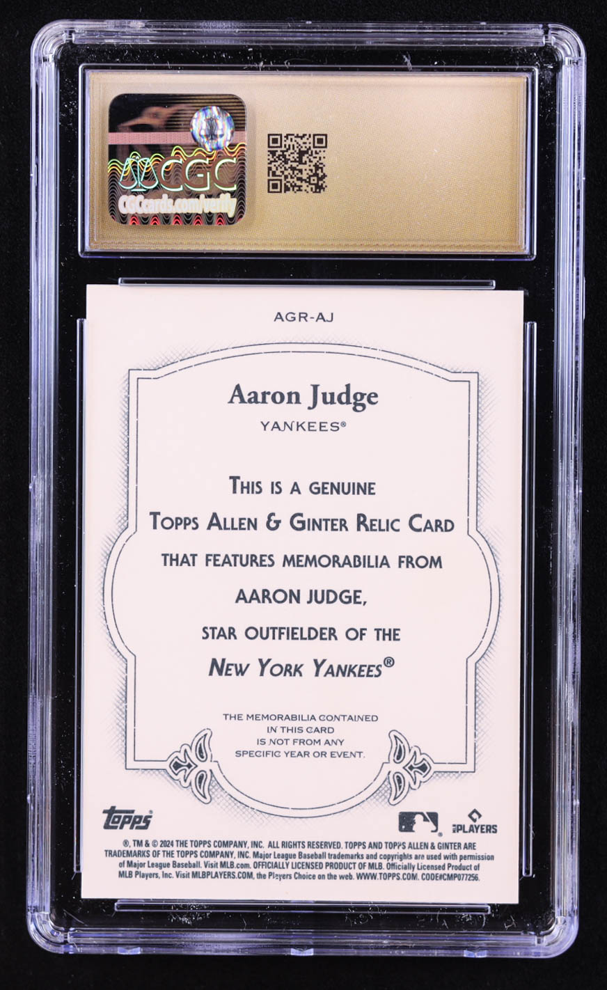 Aaron Judge 2024 Topps Allen and Ginter Relics #AGRAJ A (CGC 10 | Pristine Black Label)
