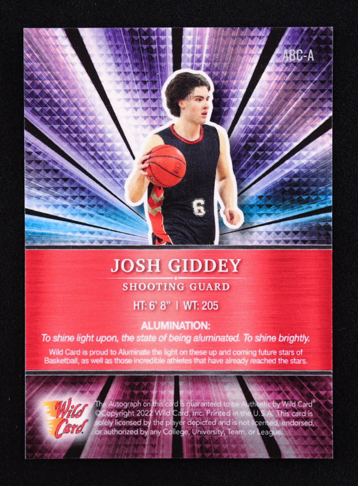 Josh Giddey 2021-22 Wild Card Alumination Autographs Red #ABCA RC #10/50