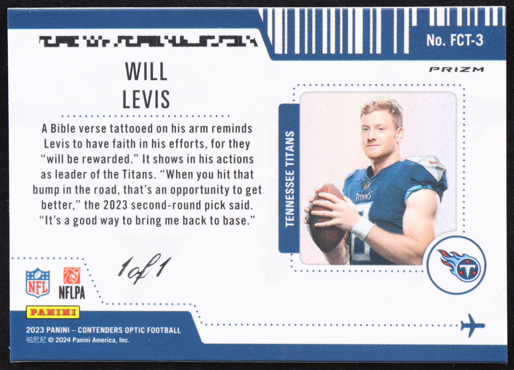 Will Levis 2023 Panini Contenders Optic First Class Ticket Gold Vinyl #3 RC #1/1