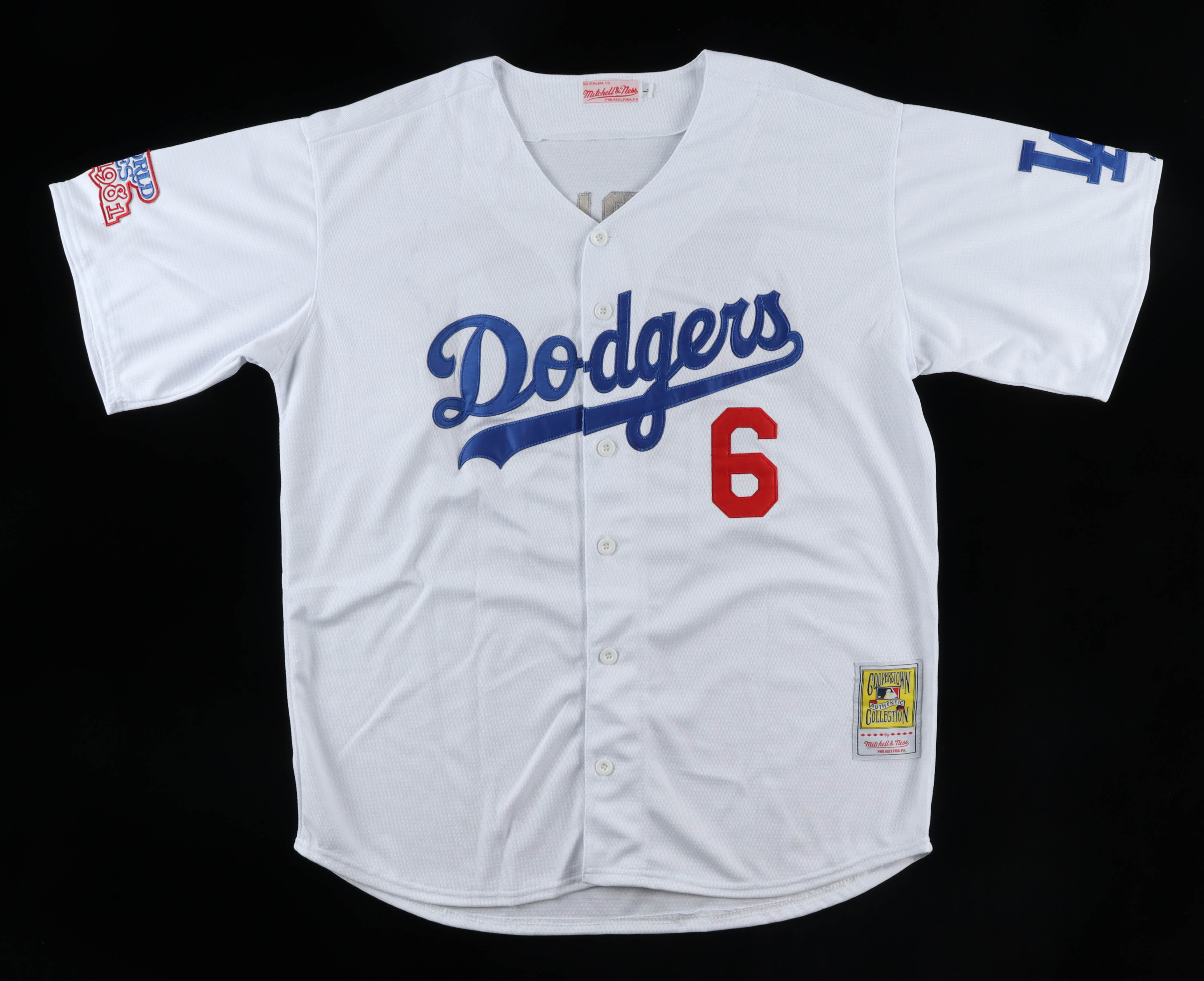 Mitchell & Ness jersey with everything sewn on, size L. Hand-signed and inscribed by Steve Garvey. Please note, there is staining on the front of the jersey. See photos regarding the condition of the item.