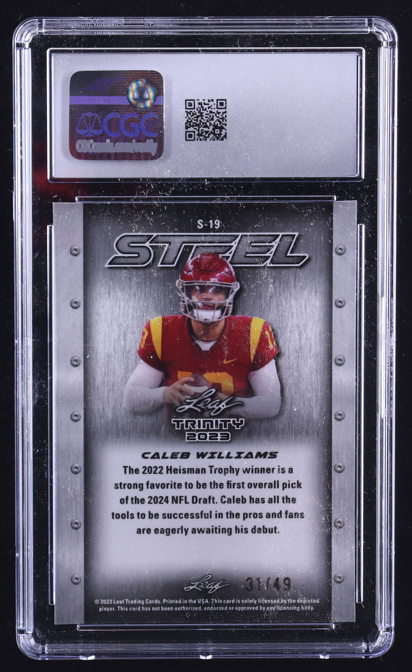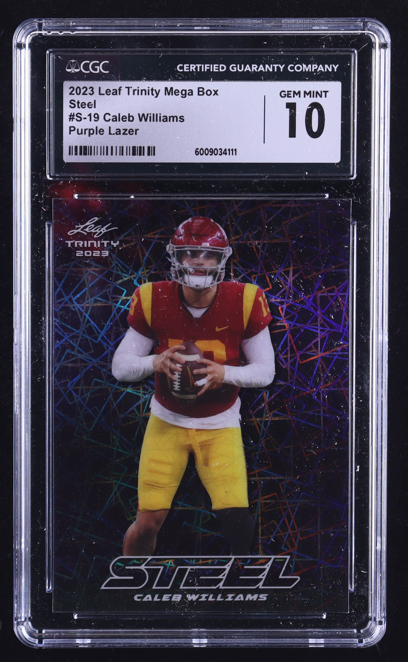 Caleb Williams 2023 Leaf Trinity Mega Box Steel Purple Lazer #S-19 RC (CGC 10)
