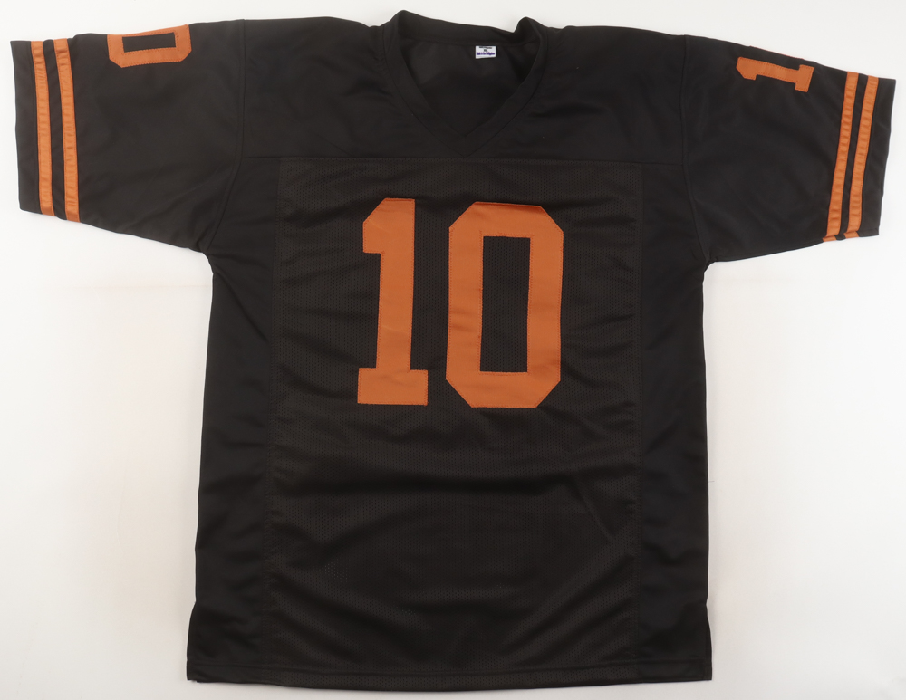 Custom jersey. Everything is sewn on, size XL. Hand-signed and inscribed by Vince Young.