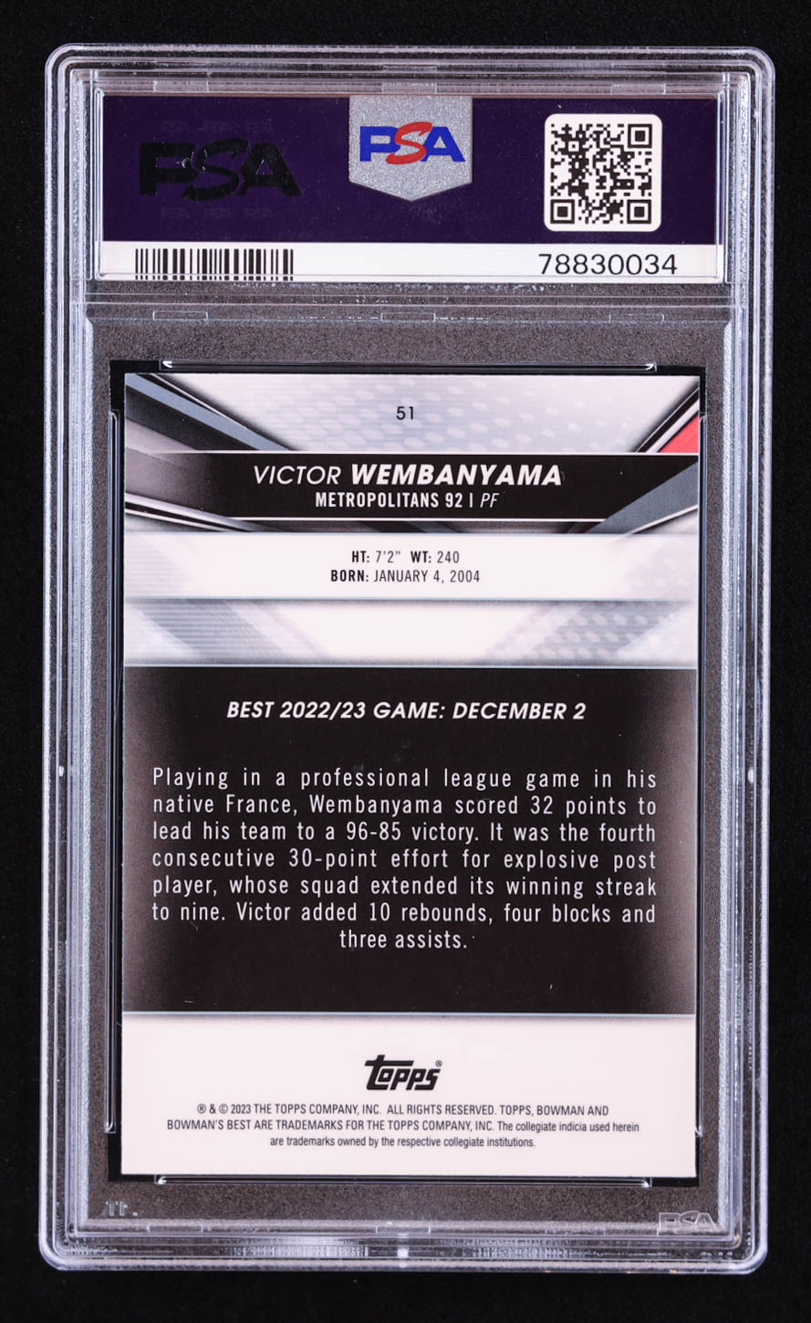 Victor Wembanyama 2022-23 Bowman's Best University #51 RC (PSA 10)