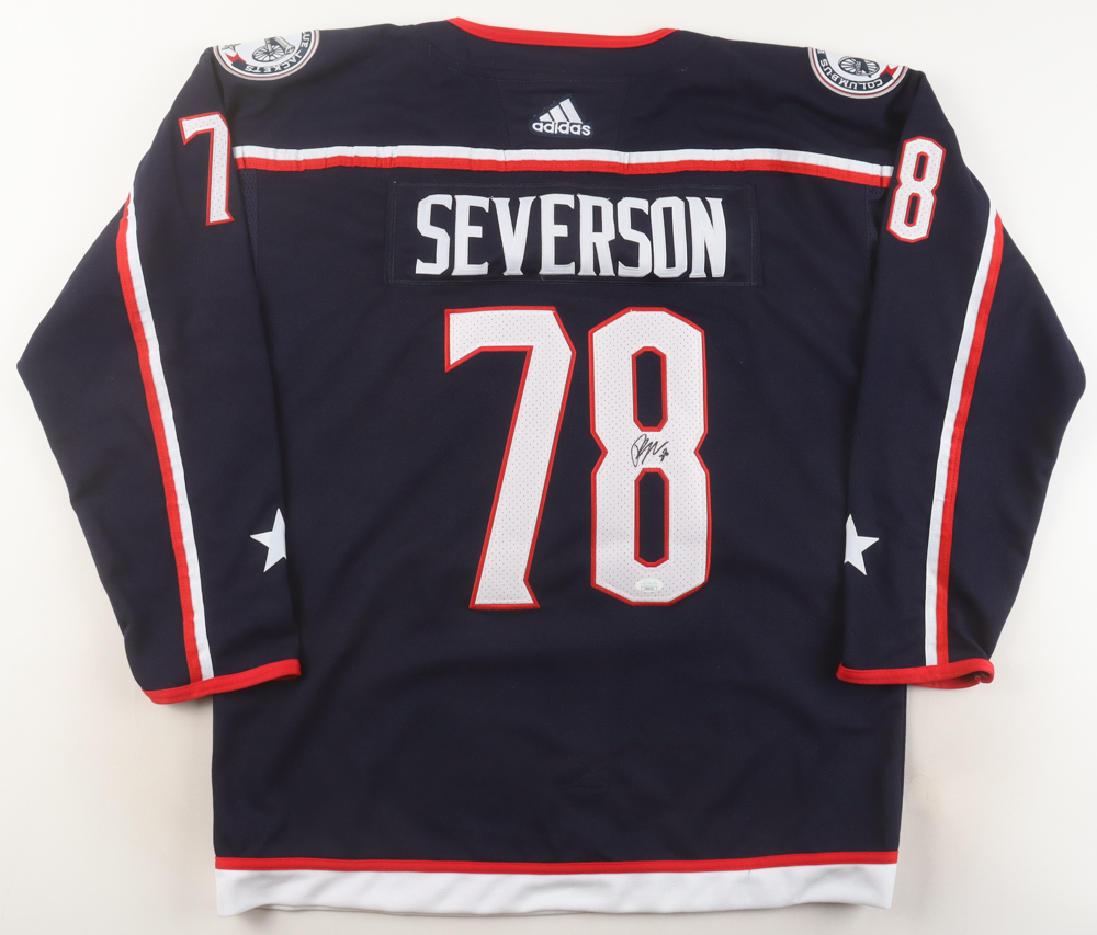 Adidas jersey with everything sewn on, size 54. Hand-signed by Damon Severson.