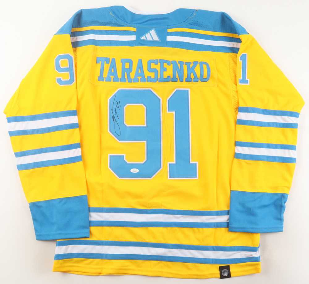 Adidas jersey. Everything is sewn on, size 54. Has been hand-signed by Vladimir Tarasenko.