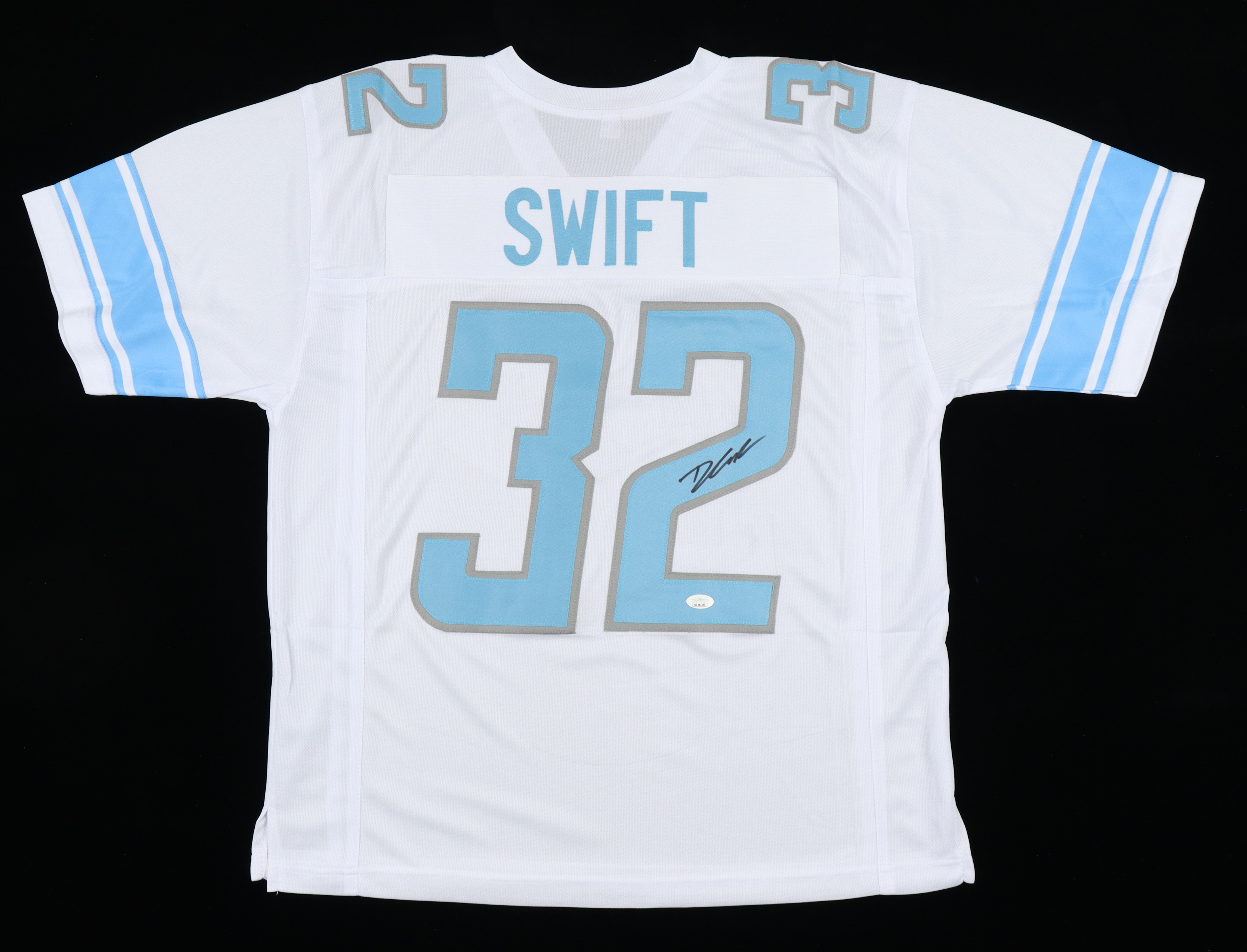 Custom jersey with everything sewn on, size XL. Hand-signed by D'Andre Swift.