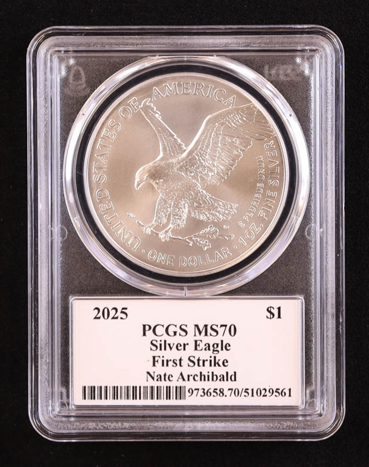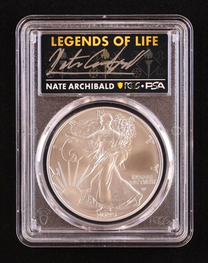 2025 American Silver Eagle, First Strike - Legends of Life: Nate Archibald Autograph (PSA) (PCGS MS70)