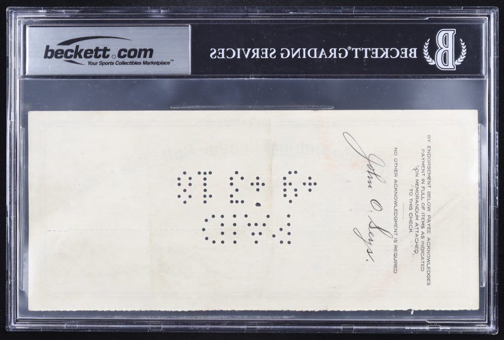 The check has been authenticated and encapsulated by Beckett for authenticity purposes.
