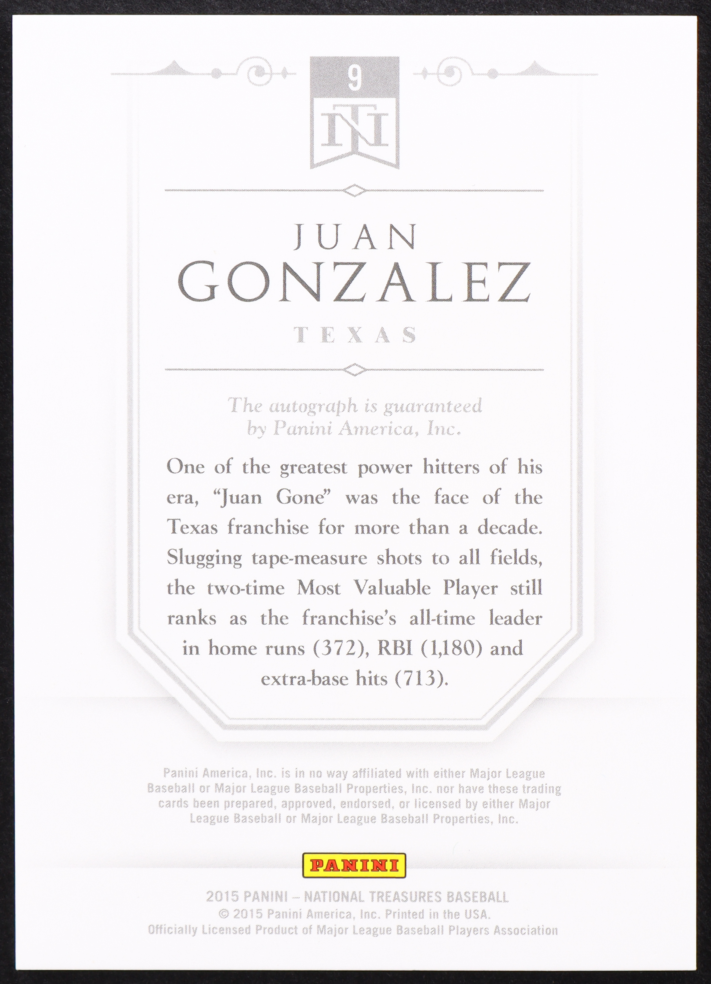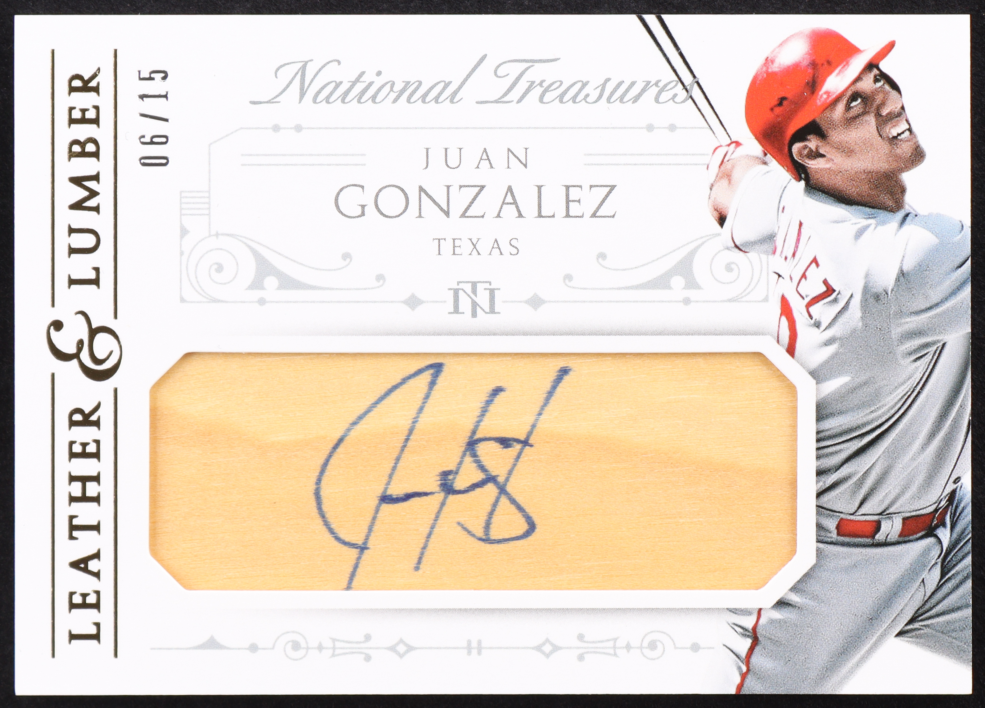 Juan Gonzalez 2015 Panini National Treasures Leather and Lumber Signatures Lumber #9 #06/15
