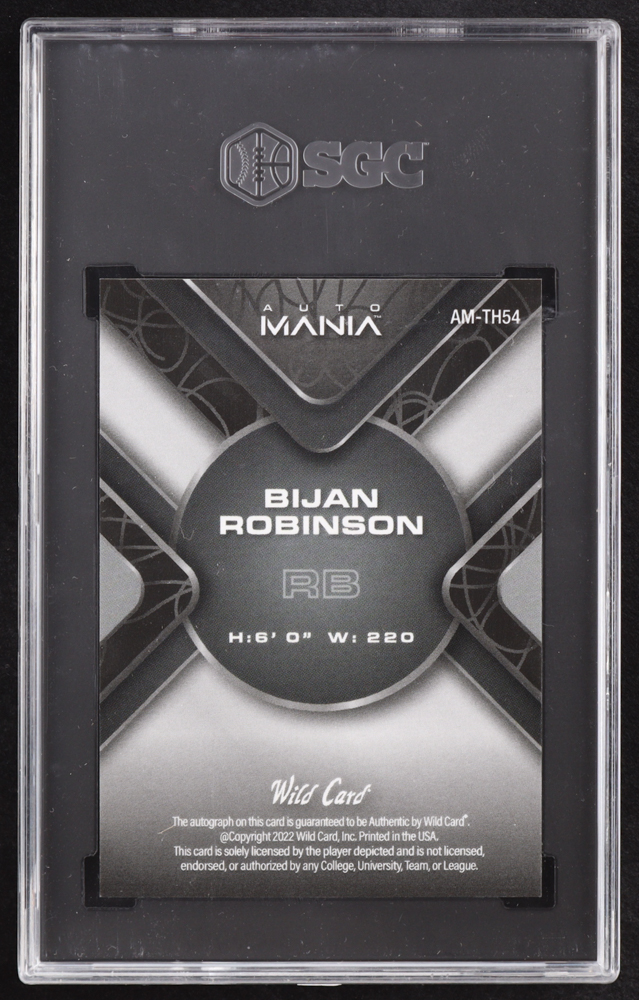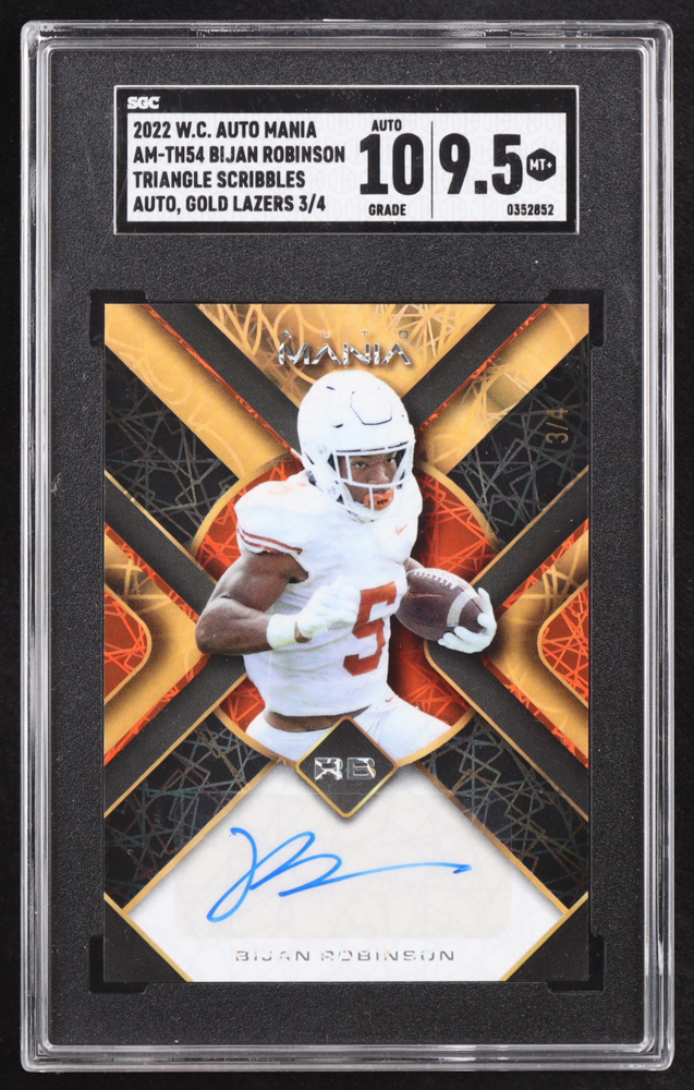 Bijan Robinson 2022 Wild Card Auto Mania Autographs Triangle Scribbles Gold Lazers #AMTH54 RC #3/4 (SGC 9.5 | Autograph Grade 10)