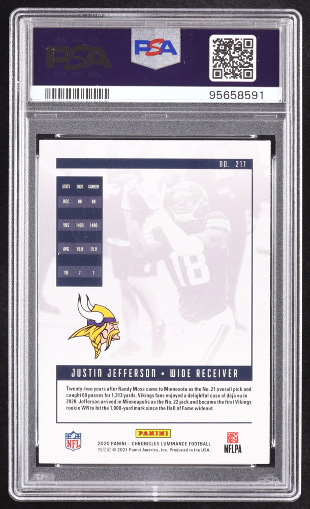 Justin Jefferson 2020 Panini Luminance #217 RC / CHRONICLES (PSA 10)