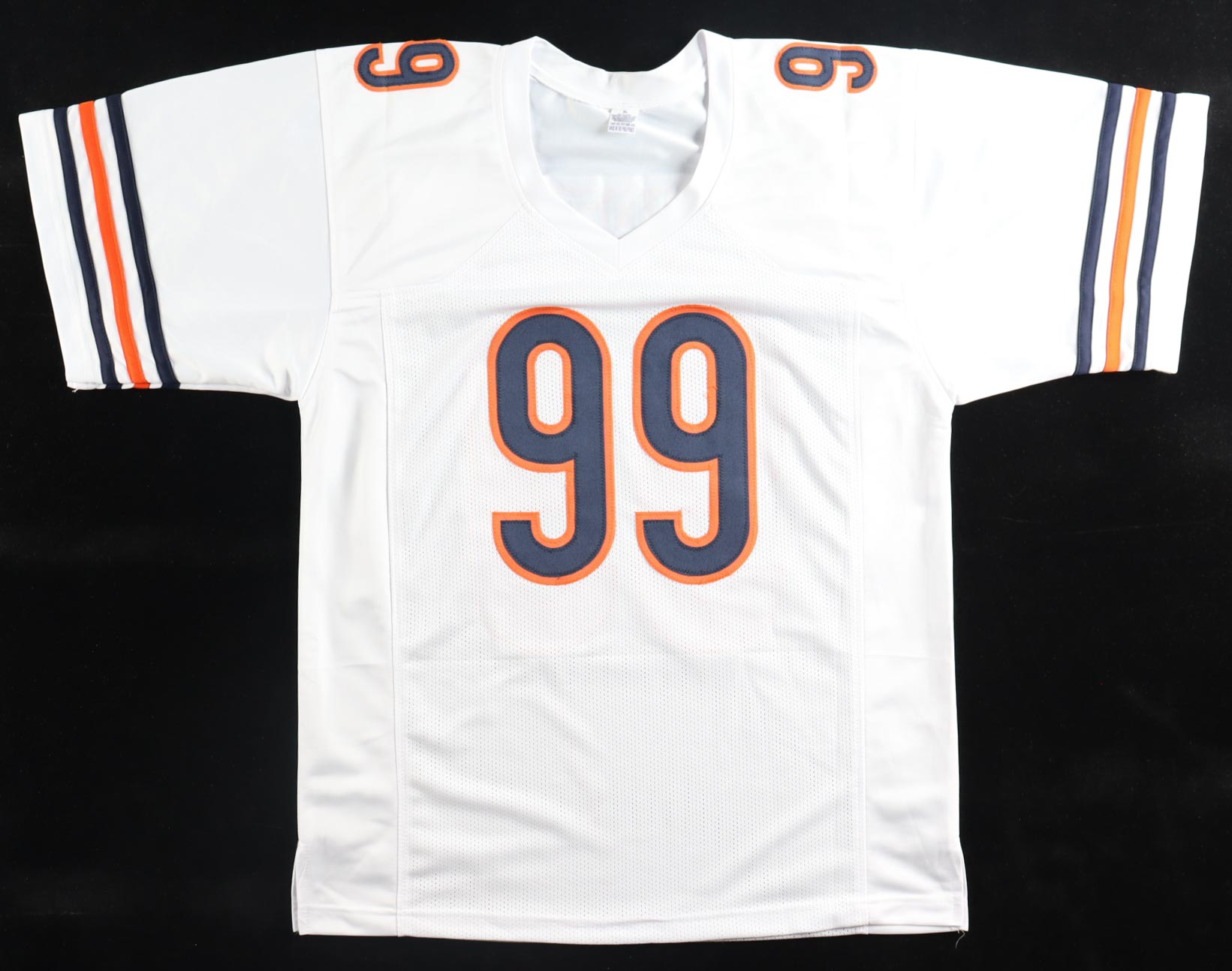 Custom jersey with everything sewn on, size XL. Hand-signed and inscribed by Dan Hampton (HOF).