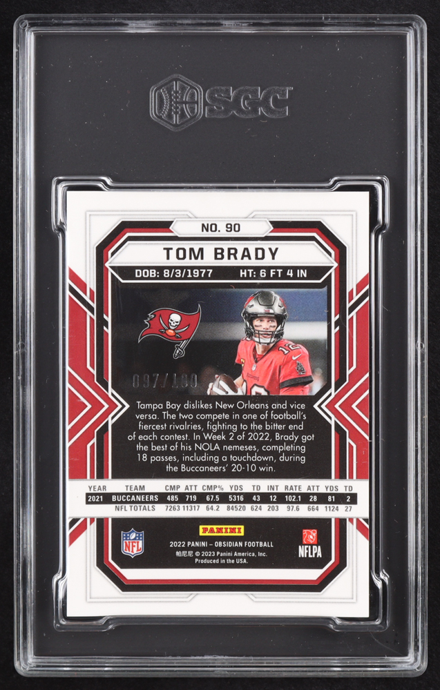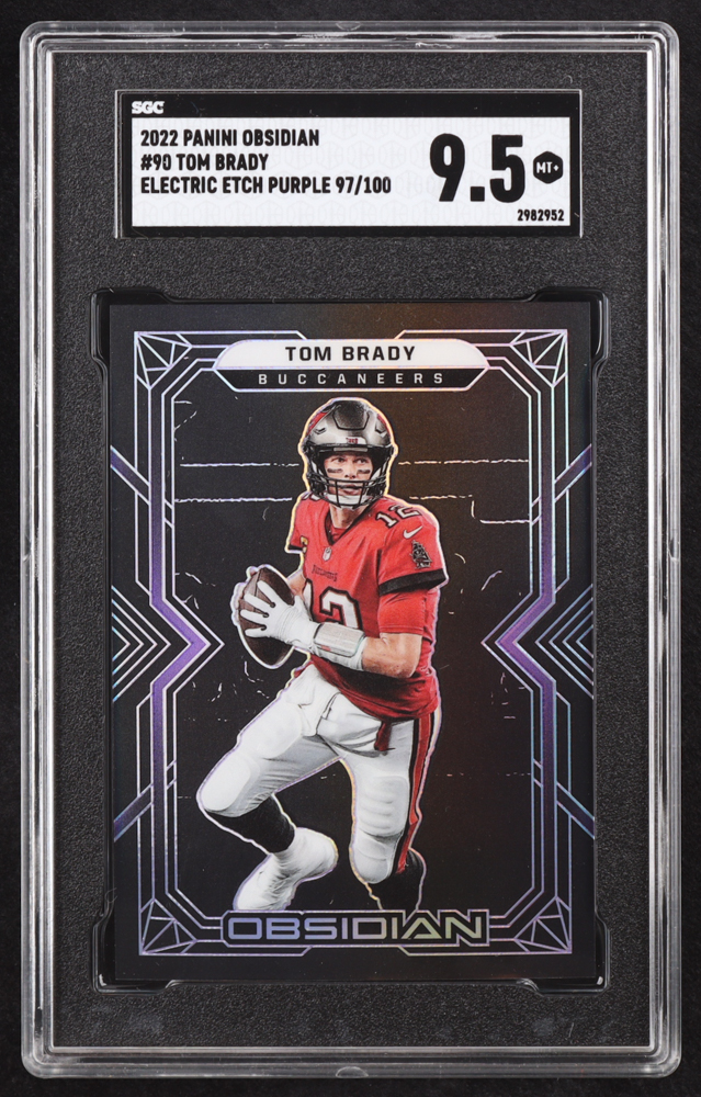 Tom Brady 2022 Panini Obsidian Electric Etch Purple #90 #97/100 (SGC 9.5)