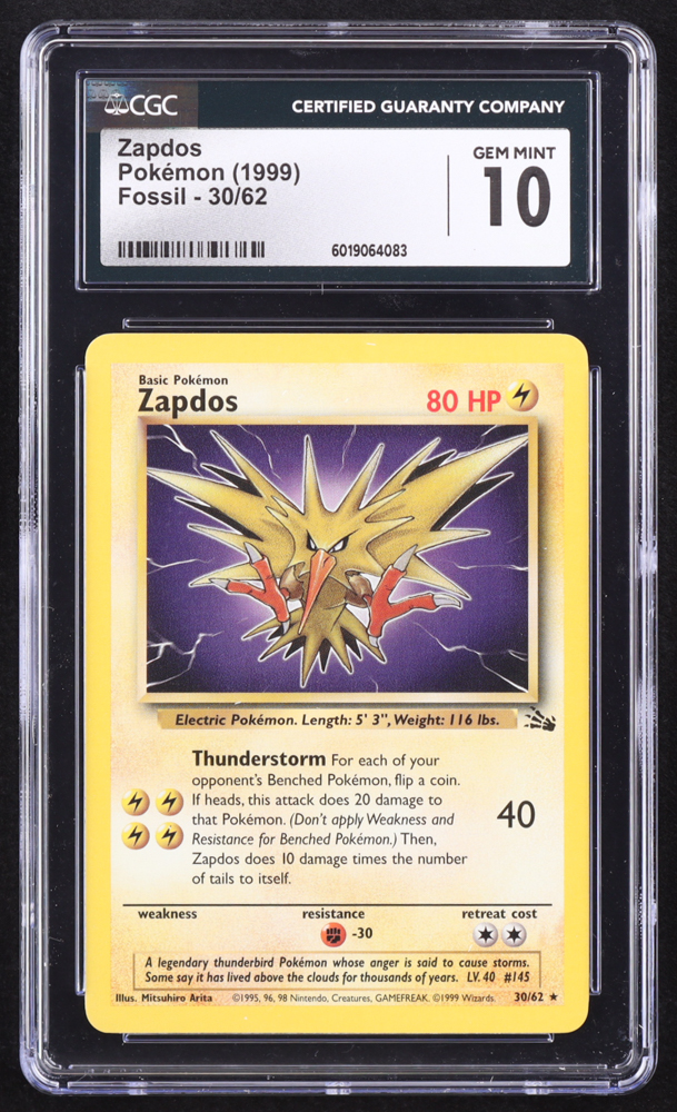Zapdos 1999 Pokemon Fossil Unlimited #30 Holo (CGC 10)