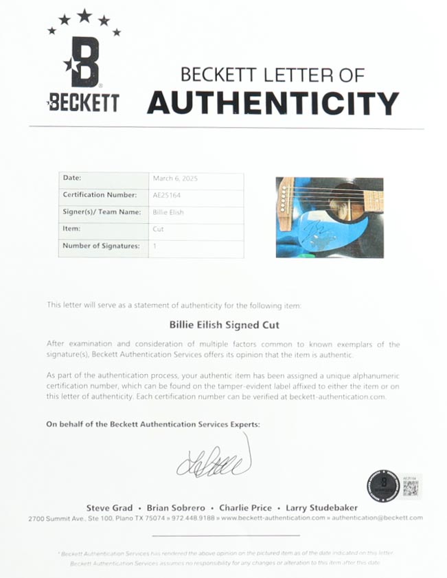 Billie Eilish Signed 38" Acoustic Guitar (Beckett)