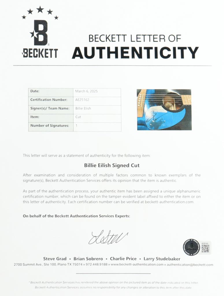 Billie Eilish Signed 38" Acoustic Guitar (Beckett)