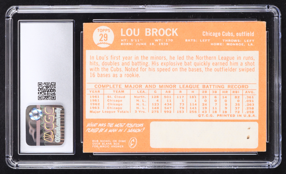 Lou Brock 1964 Topps #29 (CGC 5.5)