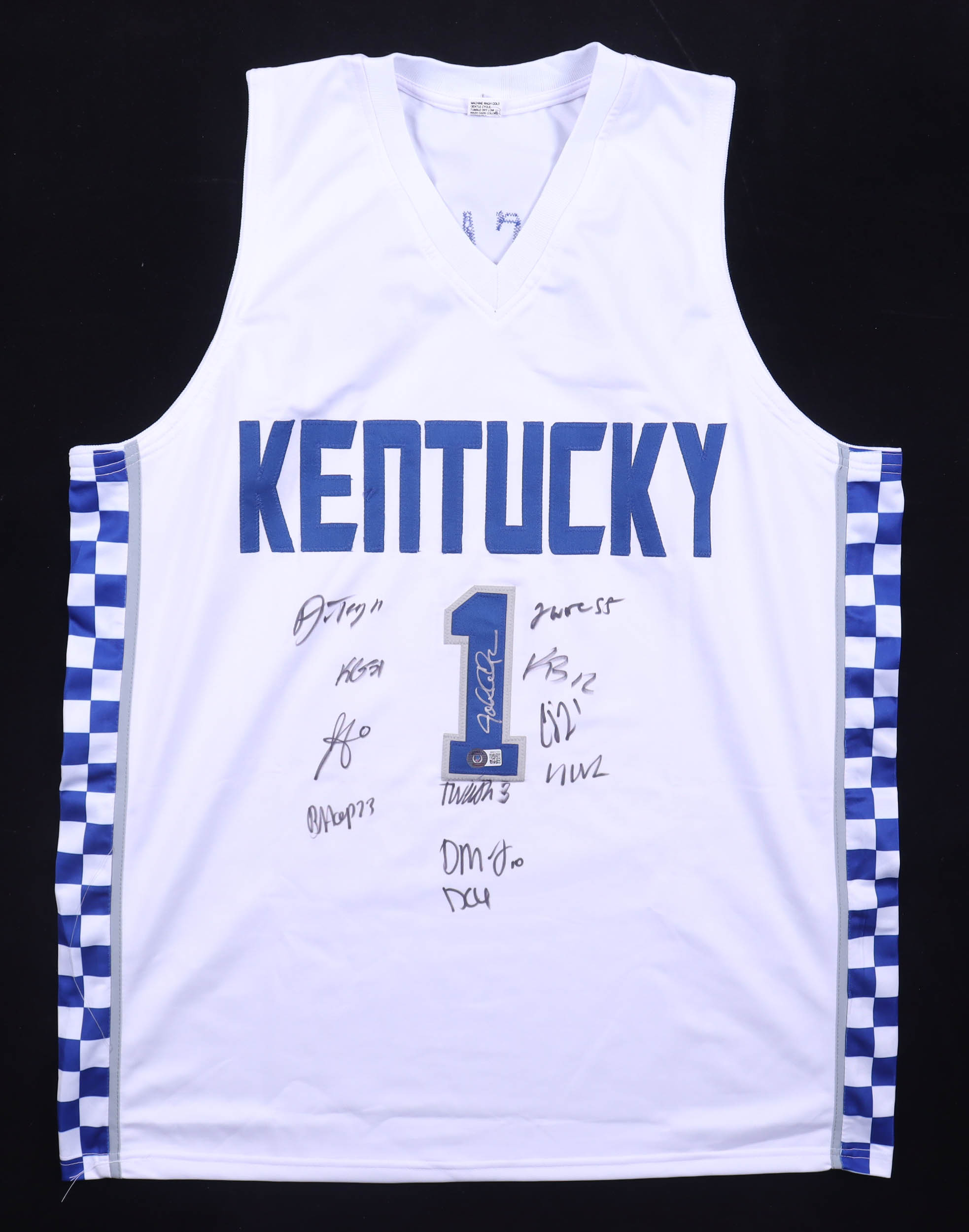 Custom jersey. Everything is sewn on, size XL. Hand-signed by Coach John Calipari (HOF), Daimion Collins, Tyty Washington, Davion Mintz, Jacob Toppin, Dontaie Allen, Keion Brooks Jr., CJ Fredrick, Kellan Grady, Bryce Hopkins, Lance Ware, and Sahvir Wheeler.