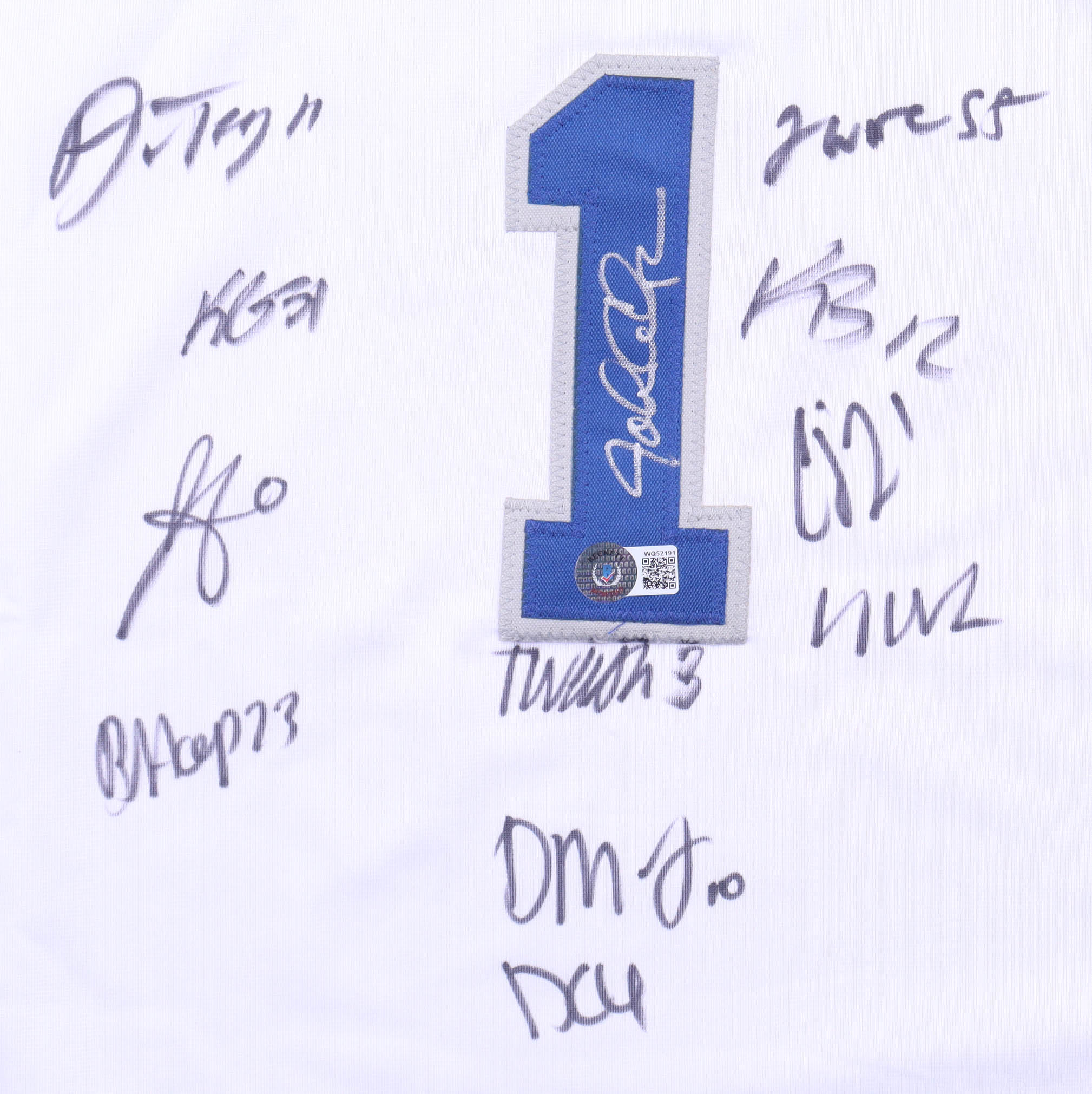 2021-22 Kentucky Wildcats Team-Signed Jersey by (12) With Coach John Calipari, Daimion Collins, Tyty Washington Jacob Toppin (Beckett)