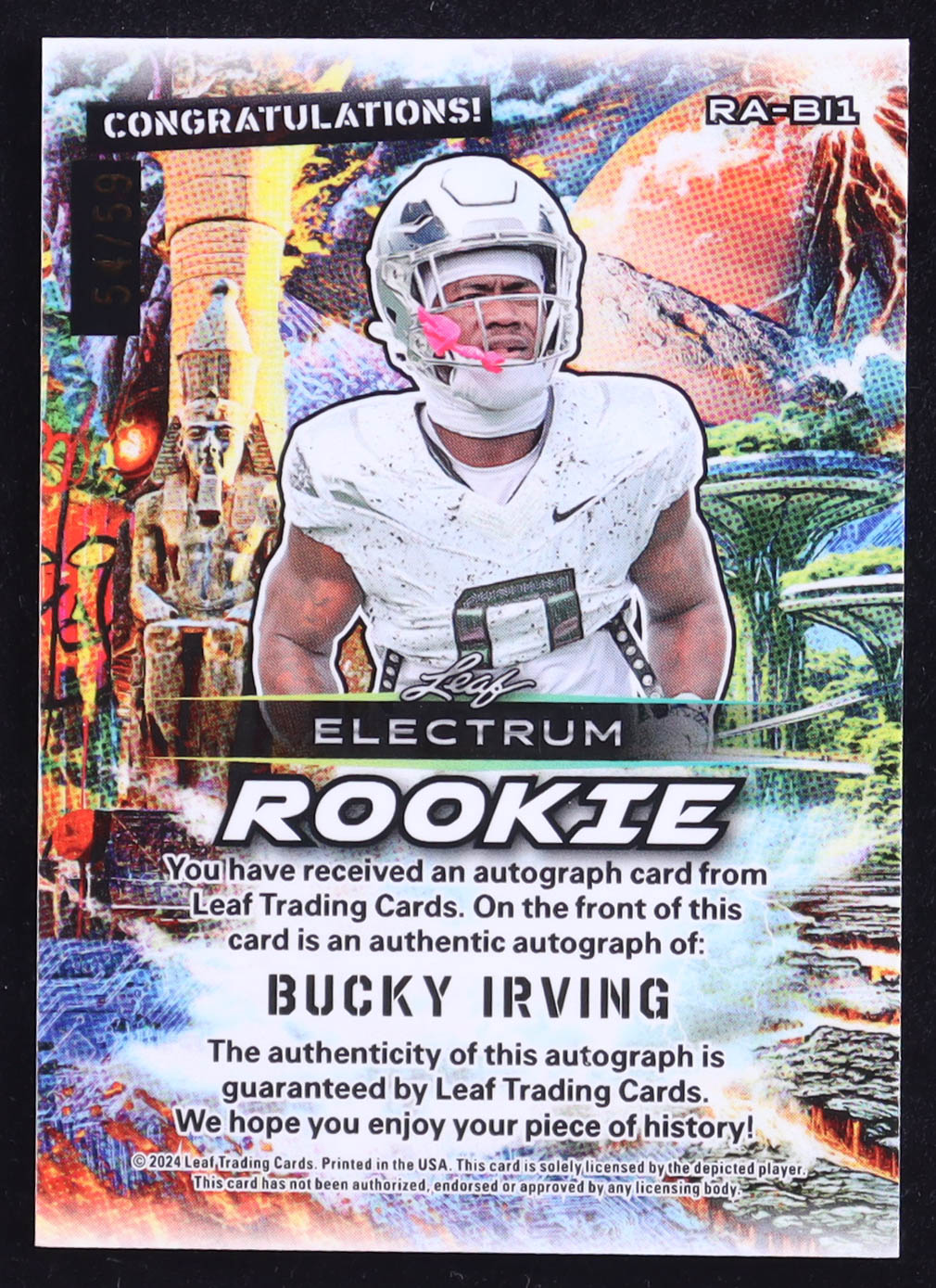 Bucky Irving 2024 Leaf Electrum Rookie Autographs Bronze #BI1 #54/59 RC