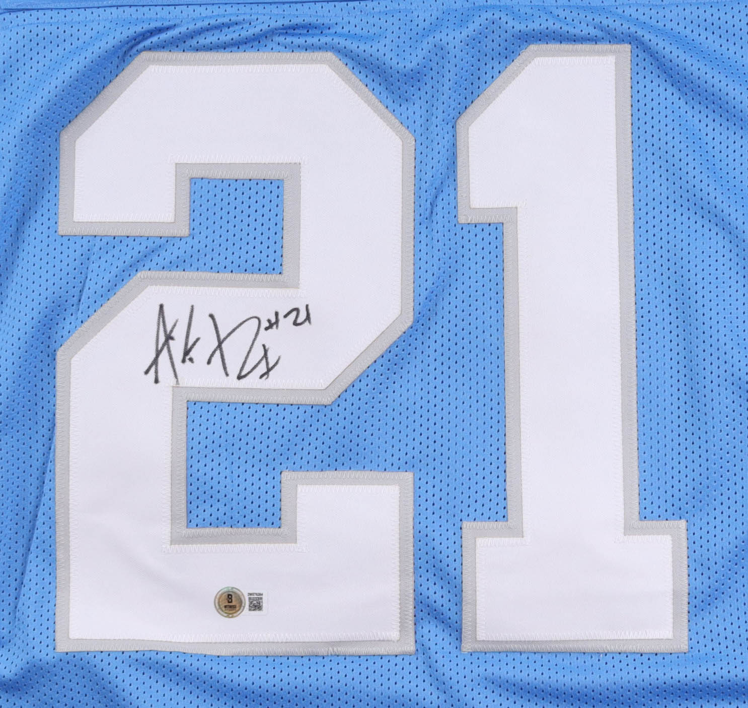 Custom jersey. Everything sewn on, size XL. Hand-signed by Amik Robertson.