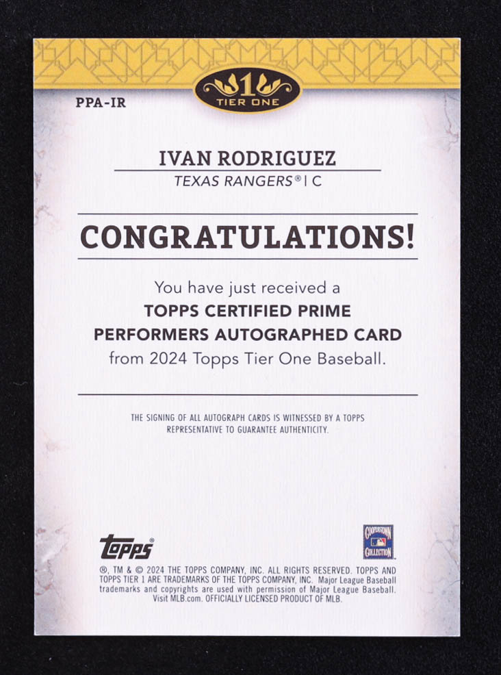 Ivan Rodriguez 2024 Topps Tier One Prime Performers Autographs #PPAIR #73/99