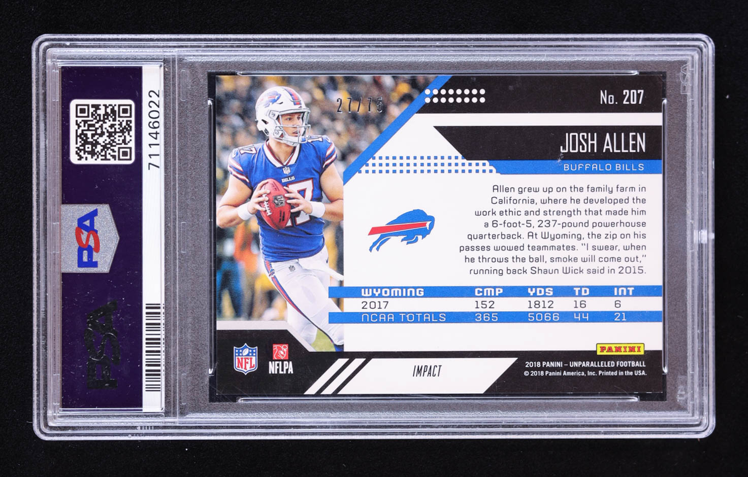 Josh Allen 2018 Panini Unparalleled Impact #207 #27/75 RC (PSA 9)