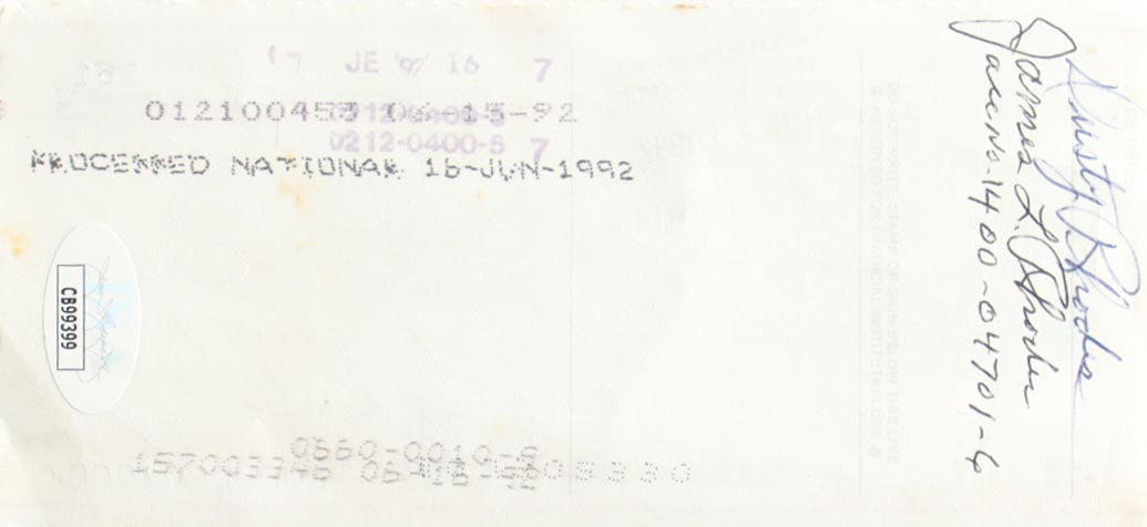 Dusty Rhodes Signed 1992 Personal Check (JSA)