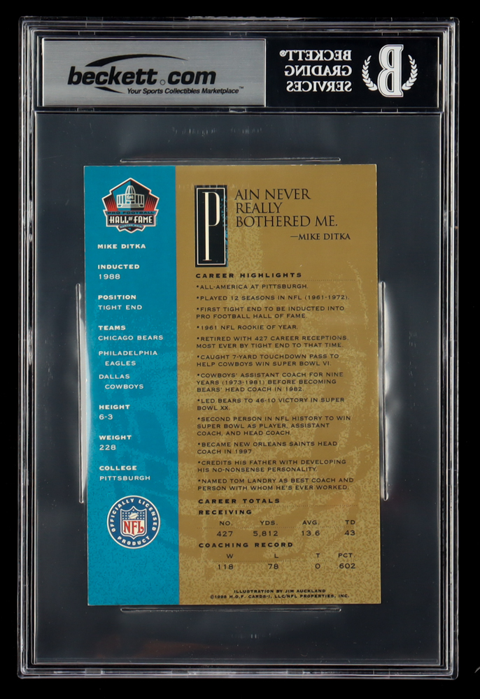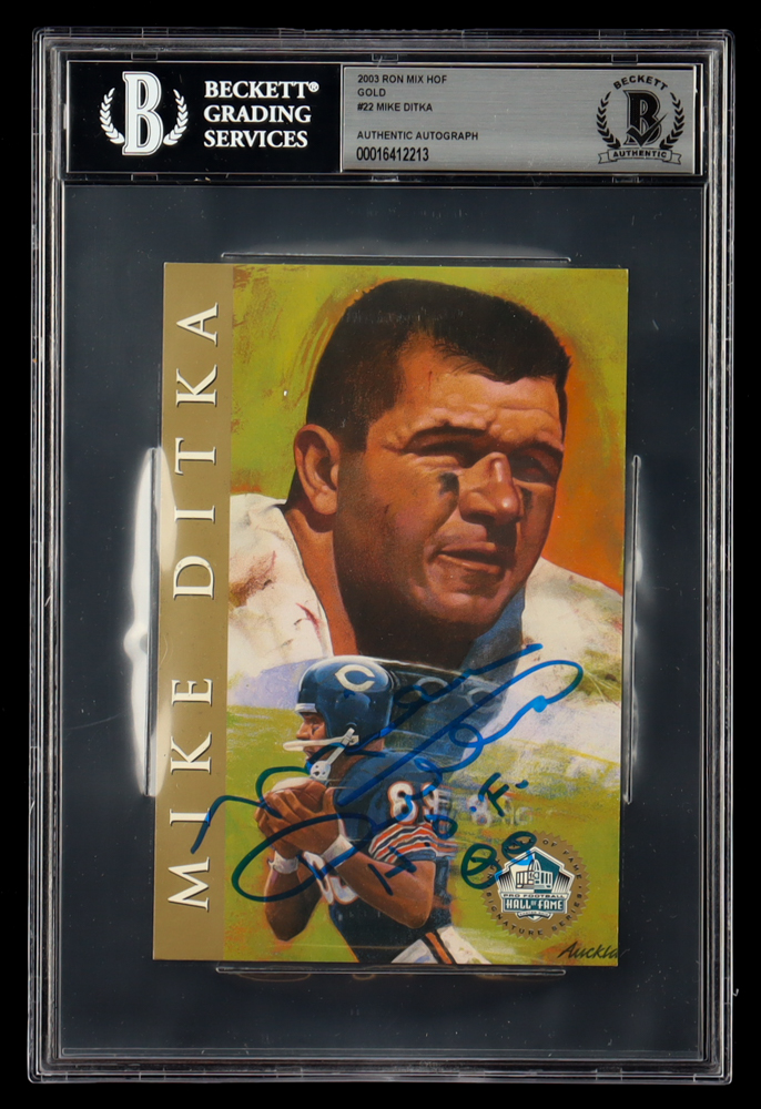 Mike Ditka Signed 2003 Ron Mix HOF Gold #22 Card Inscribed "H.O.F. 88" (BGS)