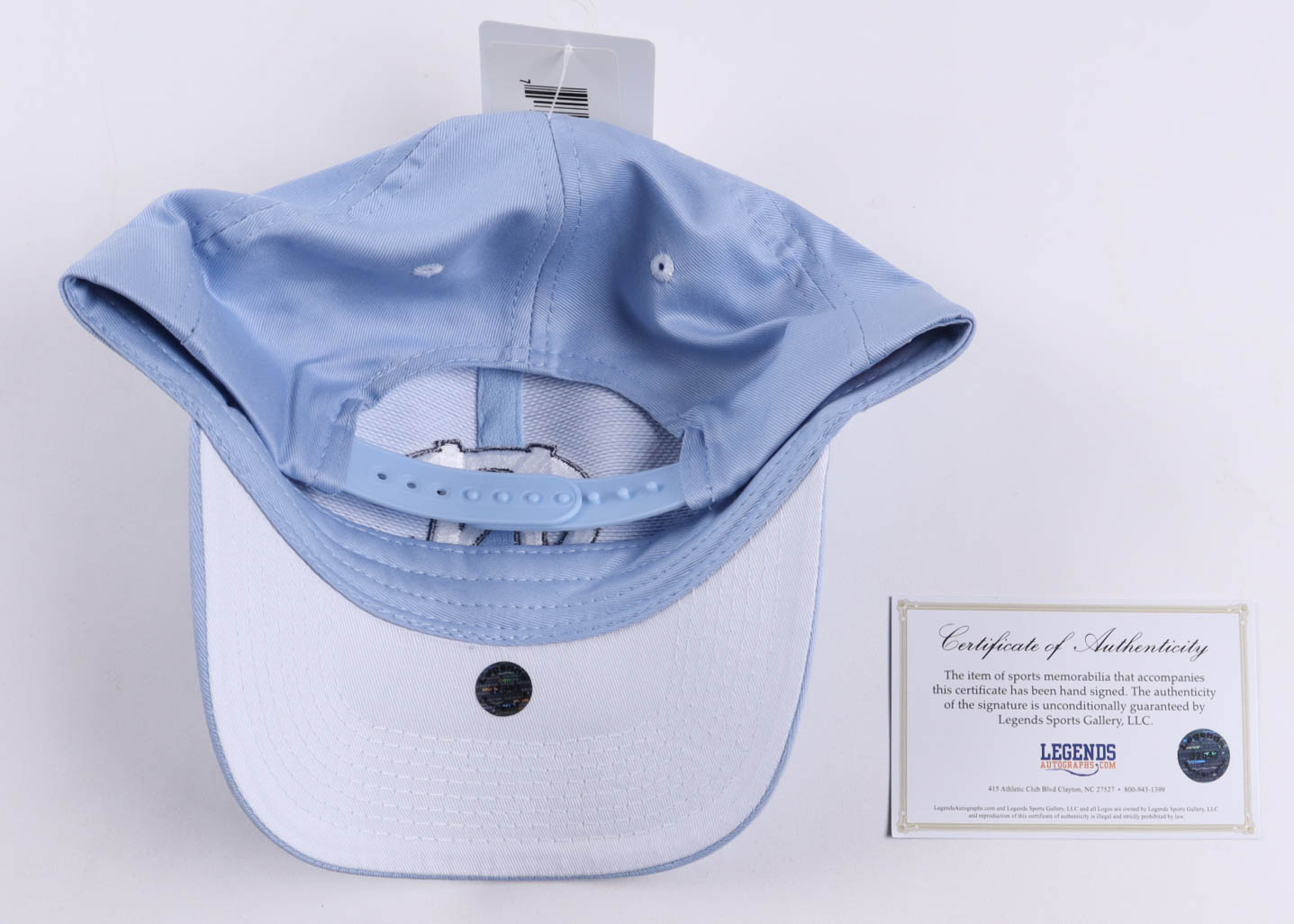 Snapback adjustable North Carolina Tar Heels hat has been hand-signed by (3) with Lennie Rosenbluth (D. 2022), Joe Quigg and Pete Brennan (D. 2012).