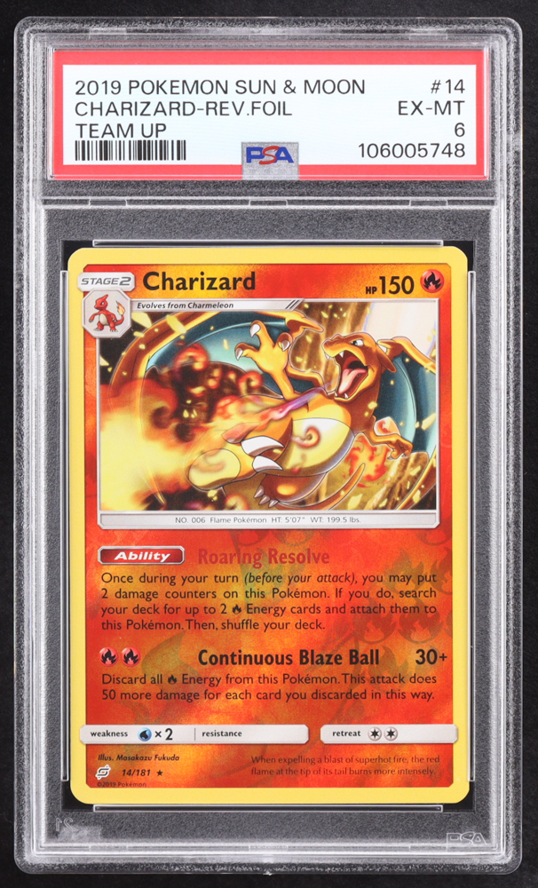 Charizard 2019 Pokemon Sun and Moon Team Up Reverse Foil #14 (PSA 6)