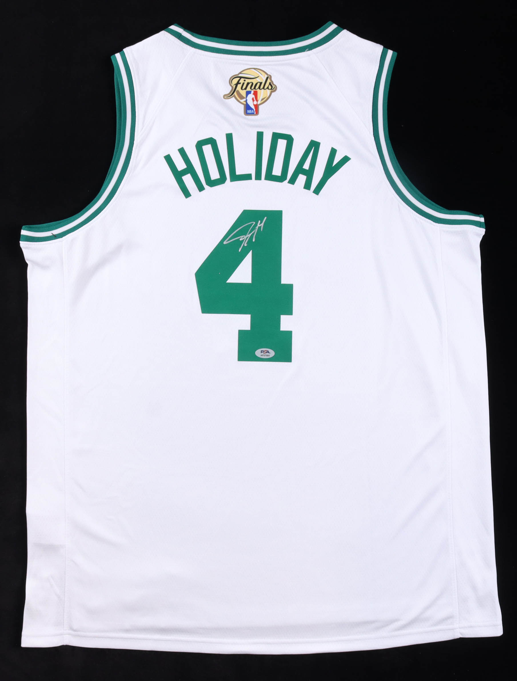 Nike jersey with everything pressed on, size 52. Hand-signed by Jrue Holiday.