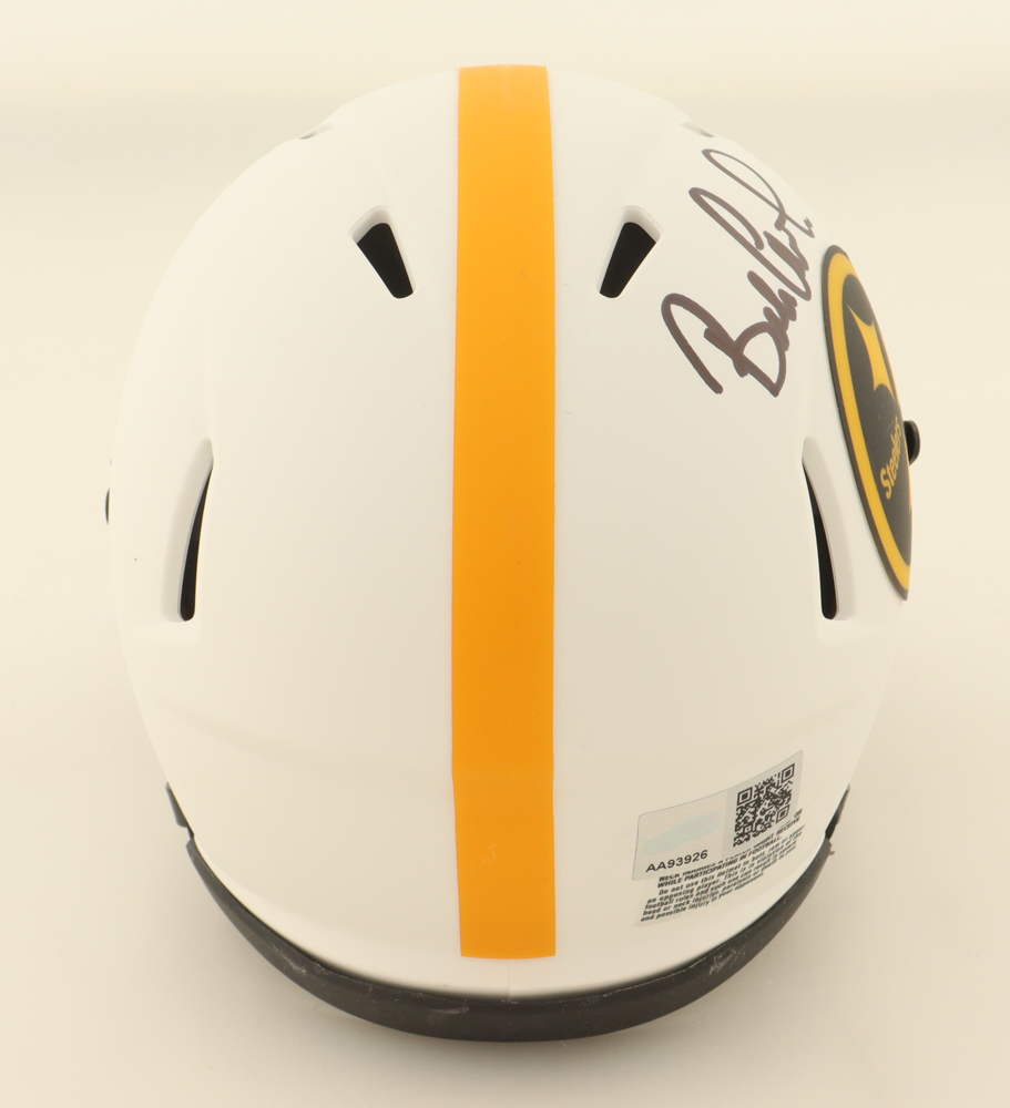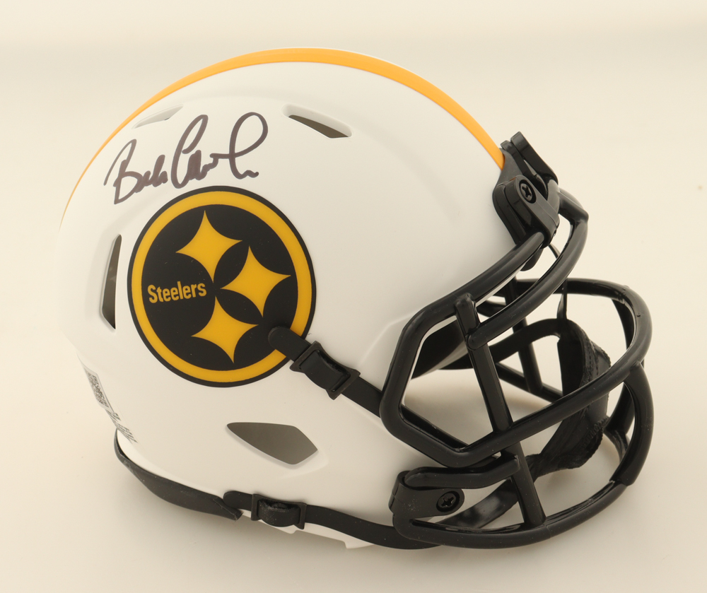 Riddell Pittsburgh Steelers Lunar Eclipse Alternate Speed mini helmet has been hand-signed by Bill Cowher (HOF).