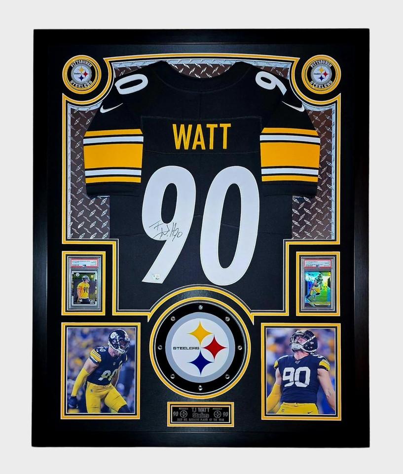 Custom frame measures 42" x 33" in size and features a Nike jersey that has been hand signed by TJ Watt (Pittsburgh Steelers).