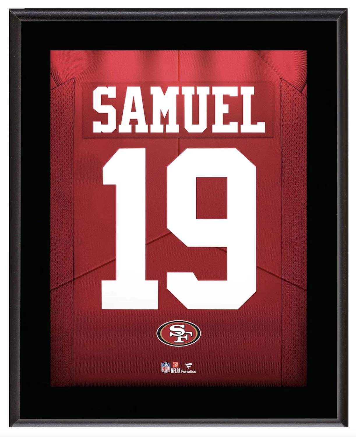 Sublimated player plaque measures 10" x 13" in size and features the jersey number for Deebo Samuel (San Francisco 49ers).