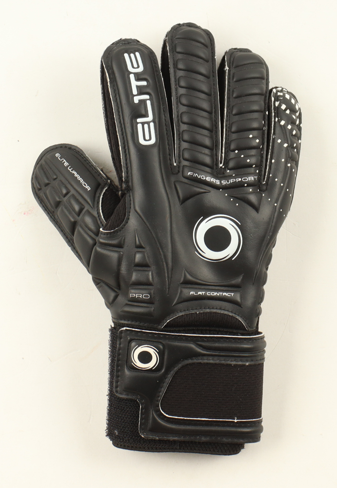 Elite Sport Goalkeeping soccer glove has been hand-signed by Thibaut Courtois (Real Madrid FC). Please note the signature is partially faded.