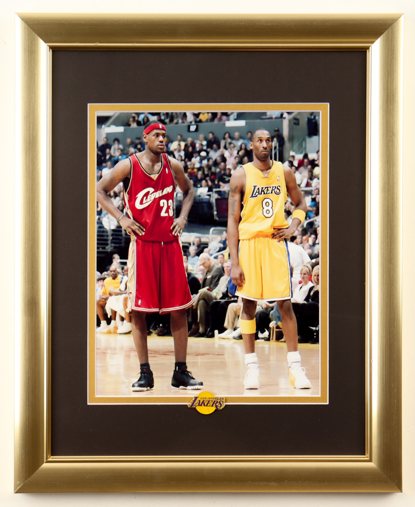 Kobe Bryant & LeBron James Custom Framed Photo Display With Lakers Pin
