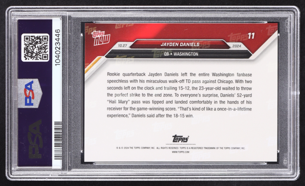Jayden Daniels 2024 Topps Now #11 RC (PSA 10)