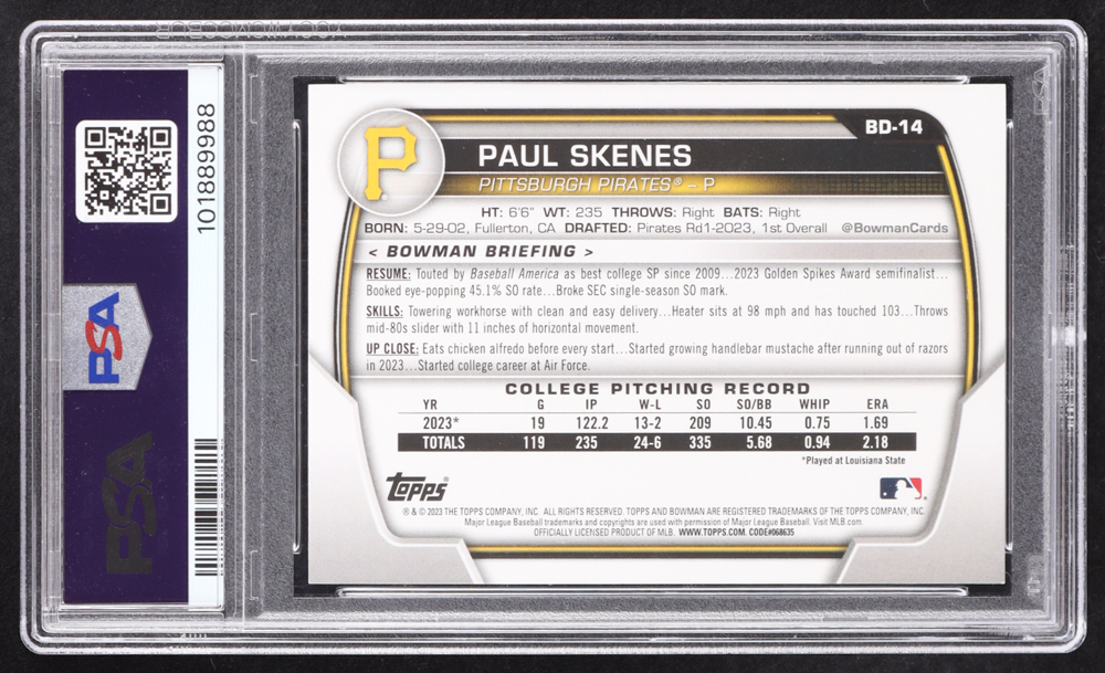 Paul Skenes 2023 Bowman Draft #BD14 RC (PSA 10)