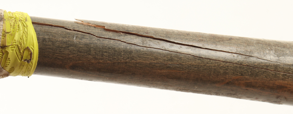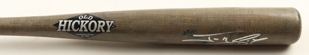 Old Hickory Pro baseball bat. Hand-signed by Jonny Gomes (Tampa Bay Rays). Please note, the bat has been game-used and cracked by an unknown player.