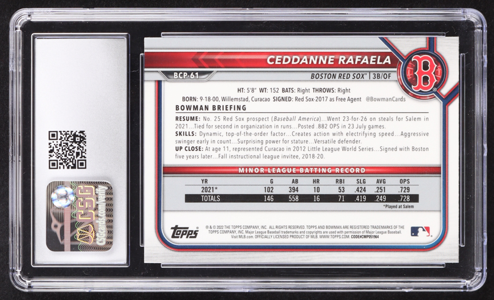 Ceddanne Rafaela 2022 Bowman Chrome Sapphire Prospects #BCP61 RC (CSG 9)