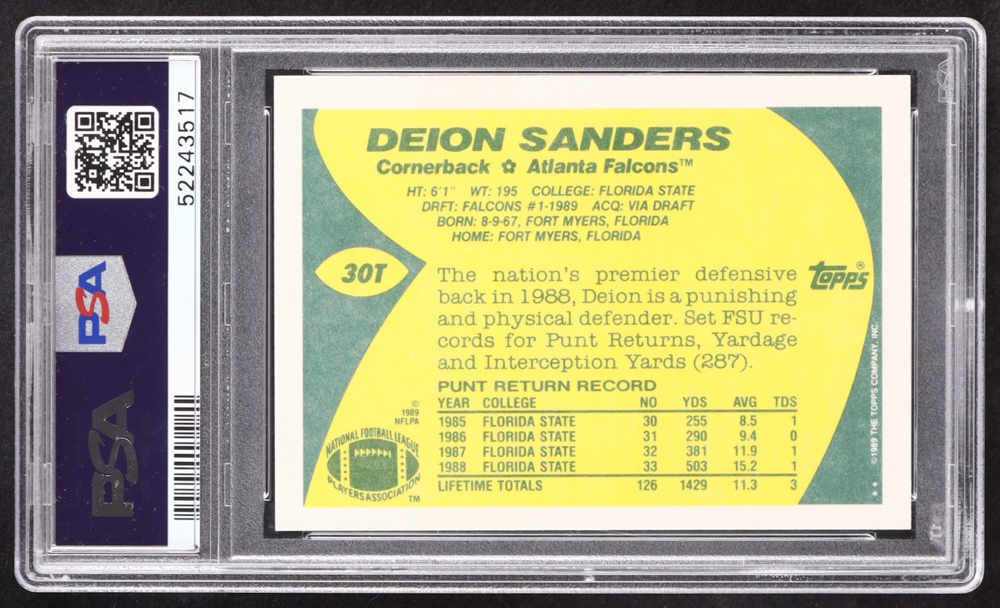 Deion Sanders 1989 Topps Traded #30T RC (PSA 9)