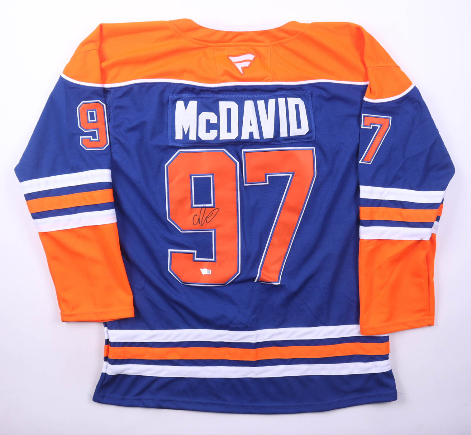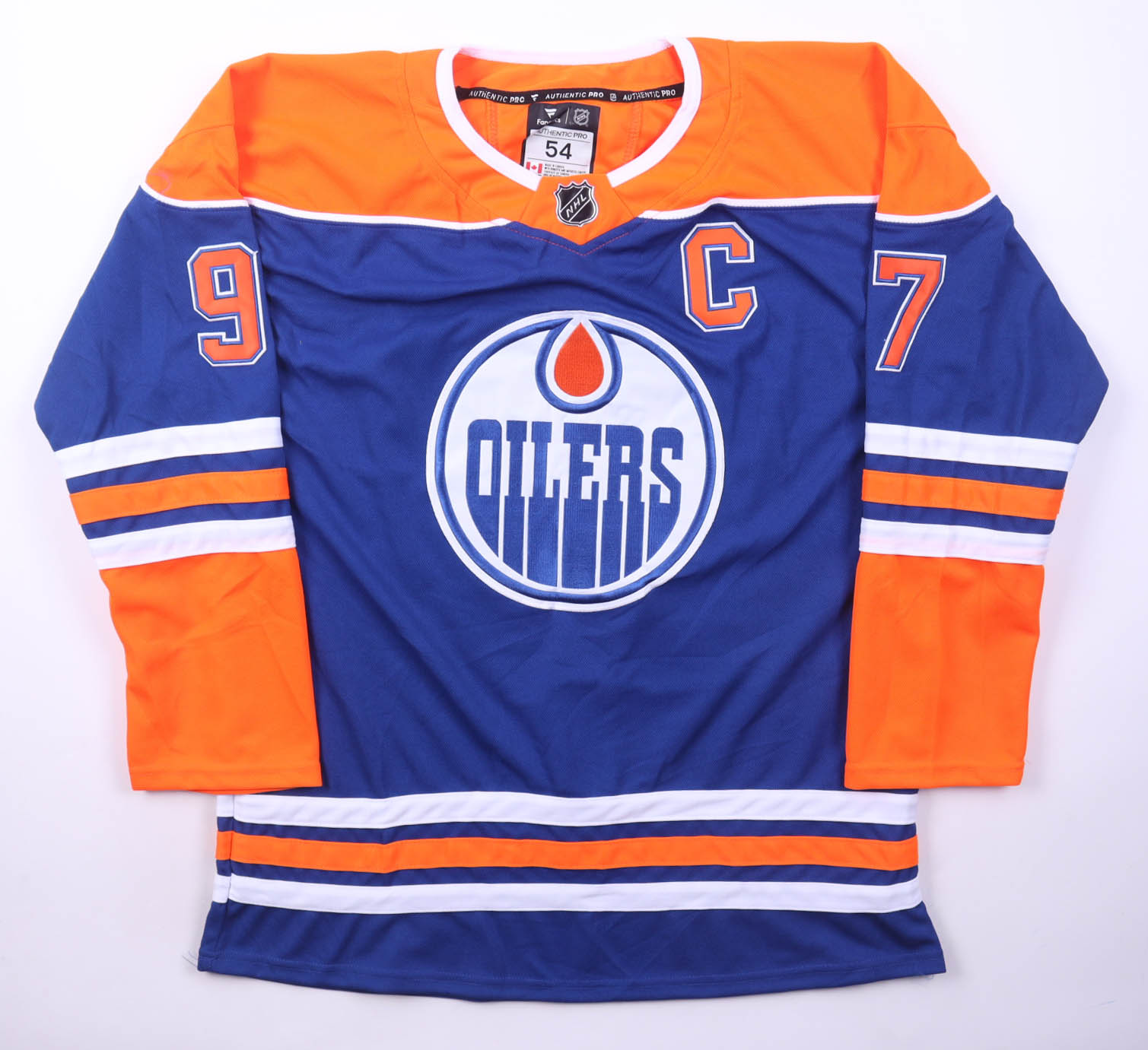 Fanatics jersey with everything sewn on, size 54. Hand-signed by Connor McDavid.