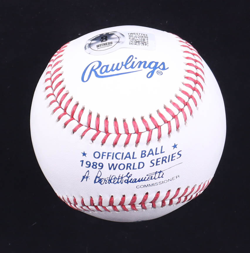 Rawlings Official 1989 World Series Baseball. Hand-signed and inscribed by Dave Stewart (Oakland Athletics). Please note, there are minor stains throughout the baseball.