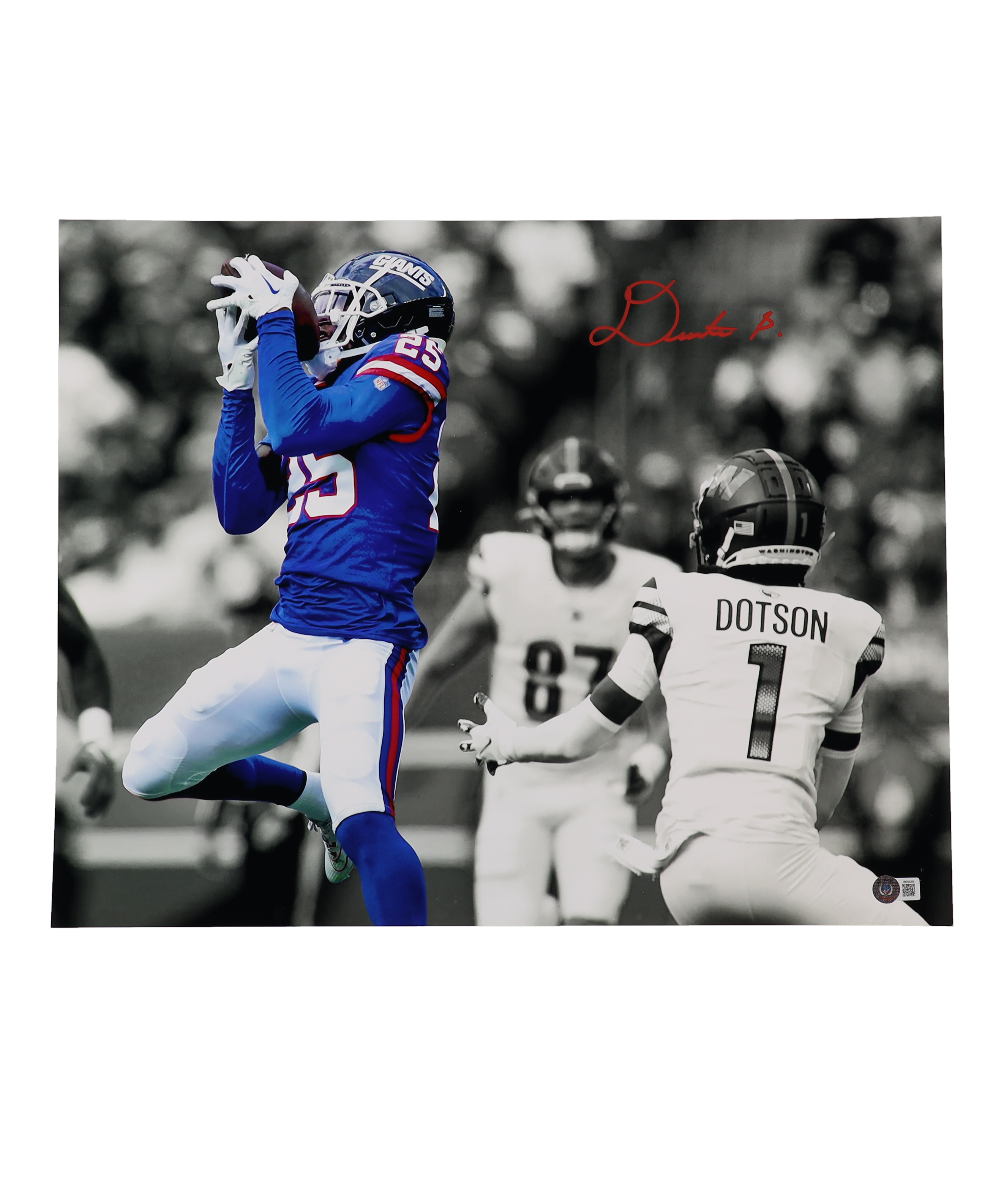 Photo measures 16" x 20" in size. Hand-signed by Deonte Banks (New York Giants).