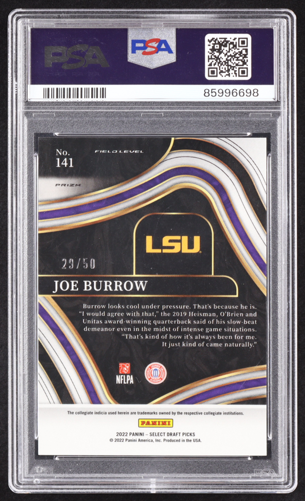 Joe Burrow 2022 Select Draft Picks Prizms Black and Gold Squares #141 #29/50 (PSA 10)